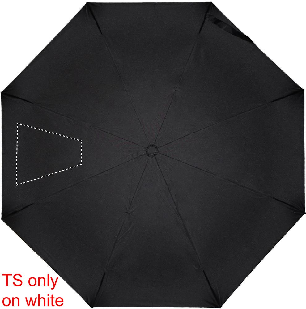 21'' Regenschirm aus 190T Seide. Windbeständig. Gestell aus verzinktem Stahl. Schienen aus schwarzem Fiberglas, Spitzen aus verchromtem Metall. Schwarz gummierter Griff mit Doming. 3fach faltbar. Passende Schirmhülle. Automatische Öffnung und Schließung.