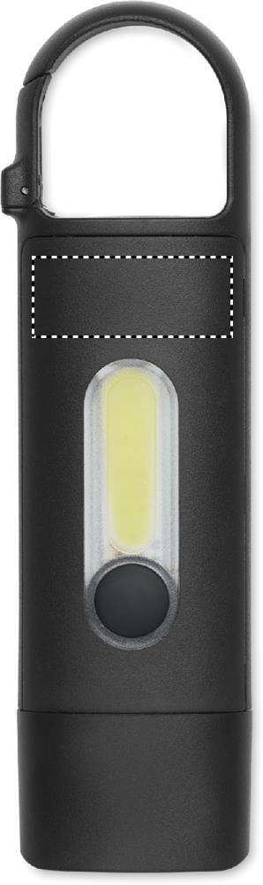 Wiederaufladbare COB-Taschenlampe im Taschenformat mit Karabinerhaken. ABS. Notlicht und 3 Lichtmodi. Inkl. 1 x 3,7 V, 200 mAh Lithium-Akku. Der Karabiner ist NICHT als Sicherung beim Klettern geeignet.
