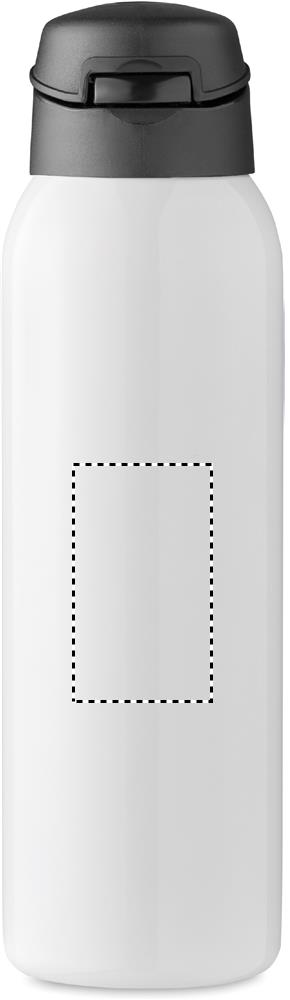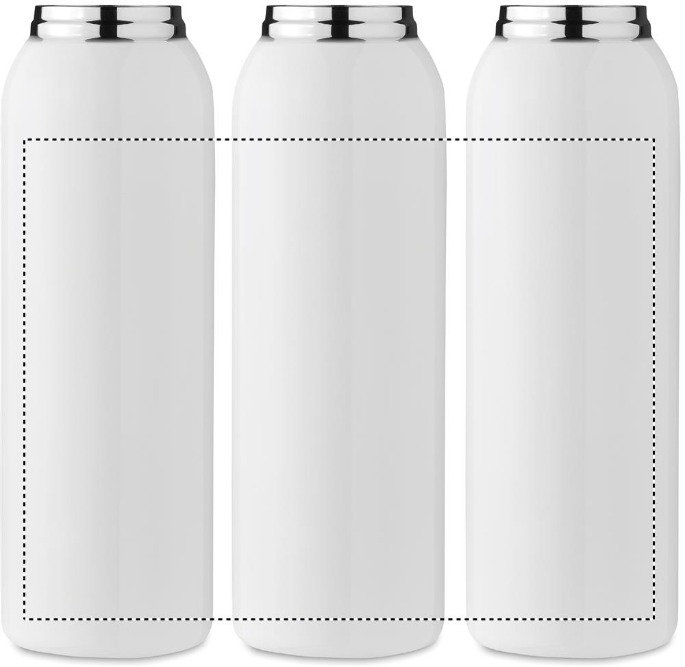 Doppelwandige Isolierflasche aus Edelstahl mit integriertem Mundstück. Verschluss mit Schlaufe. Füllmenge: 580 ml.