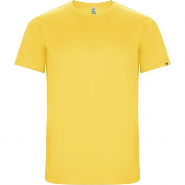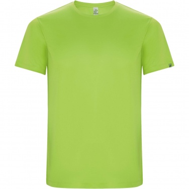 Funktions-T-Shirt aus recyceltem Polyester CONTROL DRY. Rundhalsausschnitt mit farblich abgesetzten Nähten. ECO-Logo-Etikett am Ärmel. Verpackung aus Recyclingmaterial. Herausnehmbares ECO-Etikett. Verpackung aus Recyclingmaterial. Technisches Gewebe. Das Modell ist 180 cm groß und trägt Größe M.