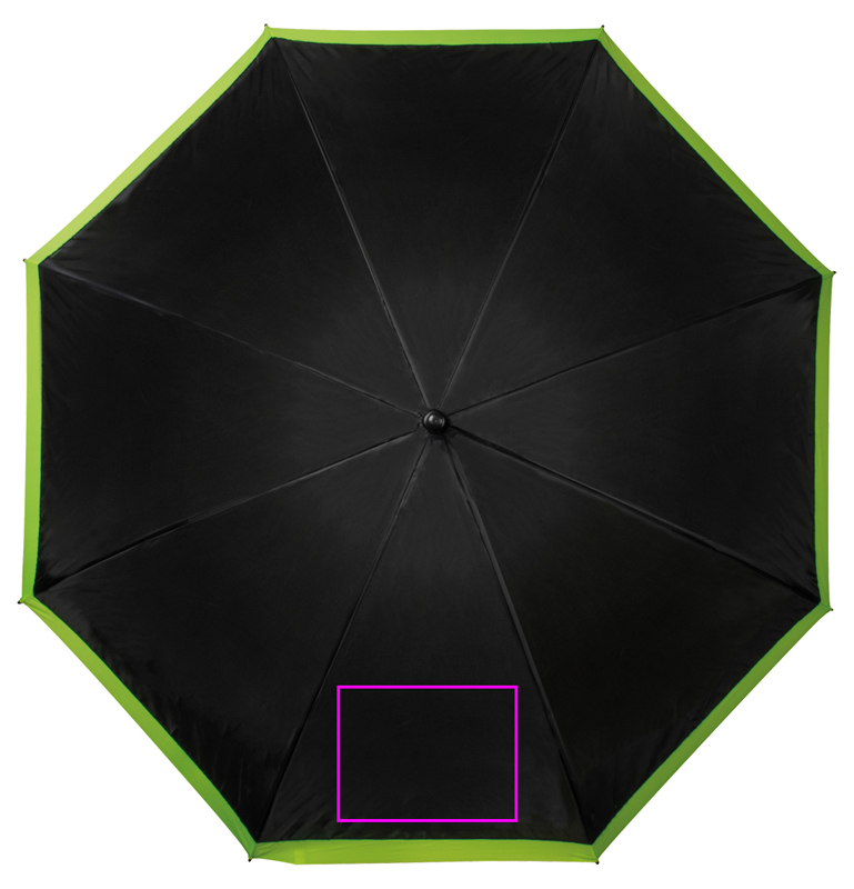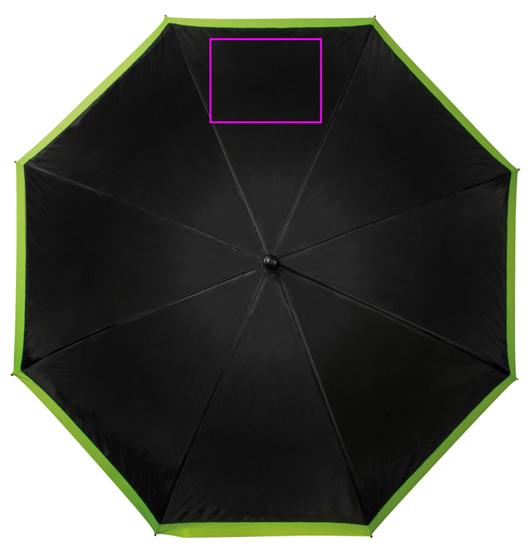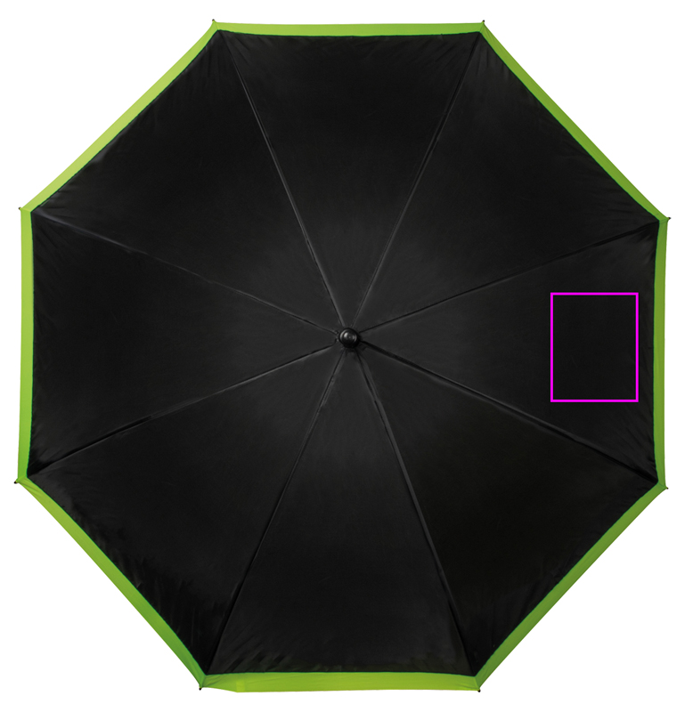 Großer Regenschirm, der durch seinen schwarz-neon-gelben Farbkontrast (190T Polyester) die Blicke auf sich und Ihr Logo lenkt. Ihr Logo drucken wir auf ein Segment.