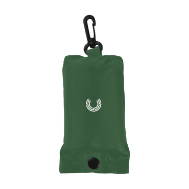 Faltbare Einkaufstasche aus 190T Polyester. In einer Tasche mit Druckknopf und Karabinerhaken. Maße aufgefaltet 38 x 53 cm.