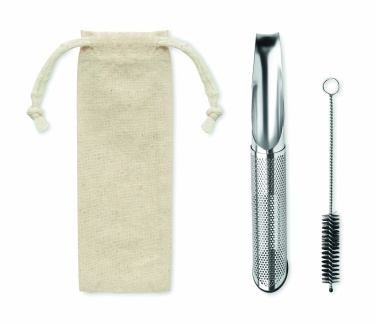 Wiederverwendbares Tee-Ei aus Edelstahl. Das Tee-Ei ist gebogen und kann so praktisch am Tassenrand eingehängt werden. Lieferung mit Reinigungsbürste im Baumwollbeutel.