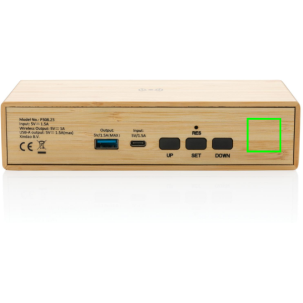 Products Sustainable promotional products Bamboo alarm clock with 5W wireless charger