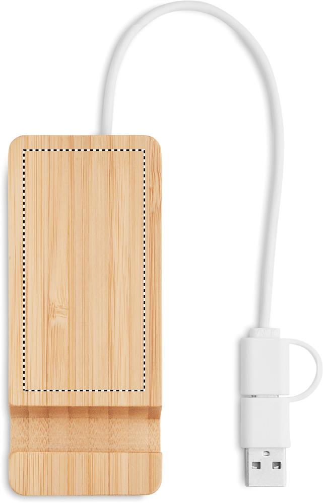 4 ports USB-C/A hub in bamboo case. Output: 2 x Type-A and 2 x Type-C. Input:2-in-1 Type-C & Type-A. Cable length: 20 cm.