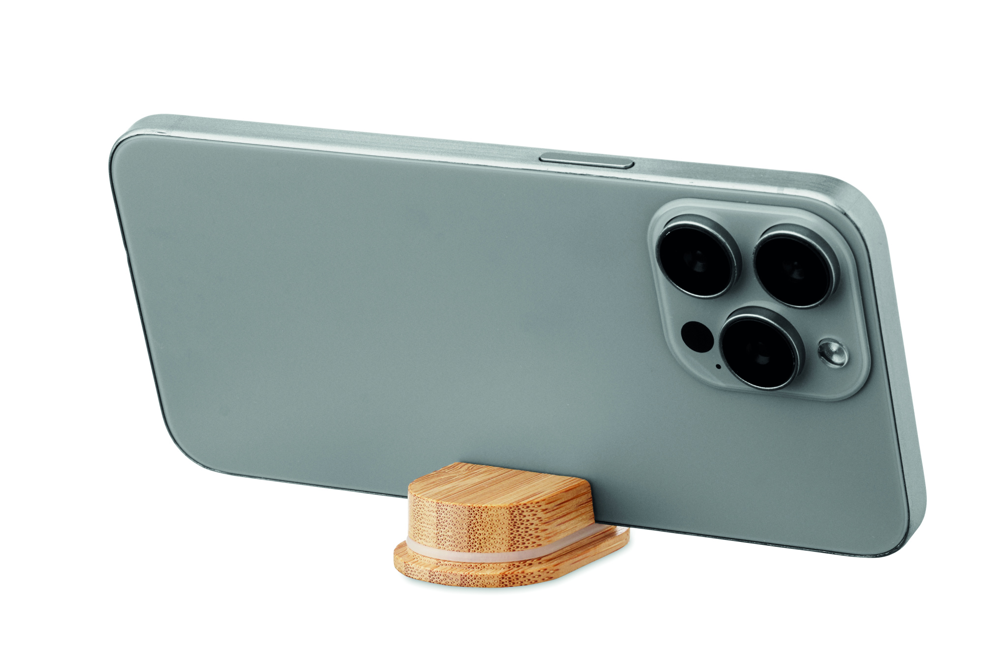 Cable set in wheat straw/ABS case with bamboo top and carabiner. Lid serves as phone stand (in horizontal position). Cable input 2in1 USB-C/A, output Type-C and 2 in 1 pin.