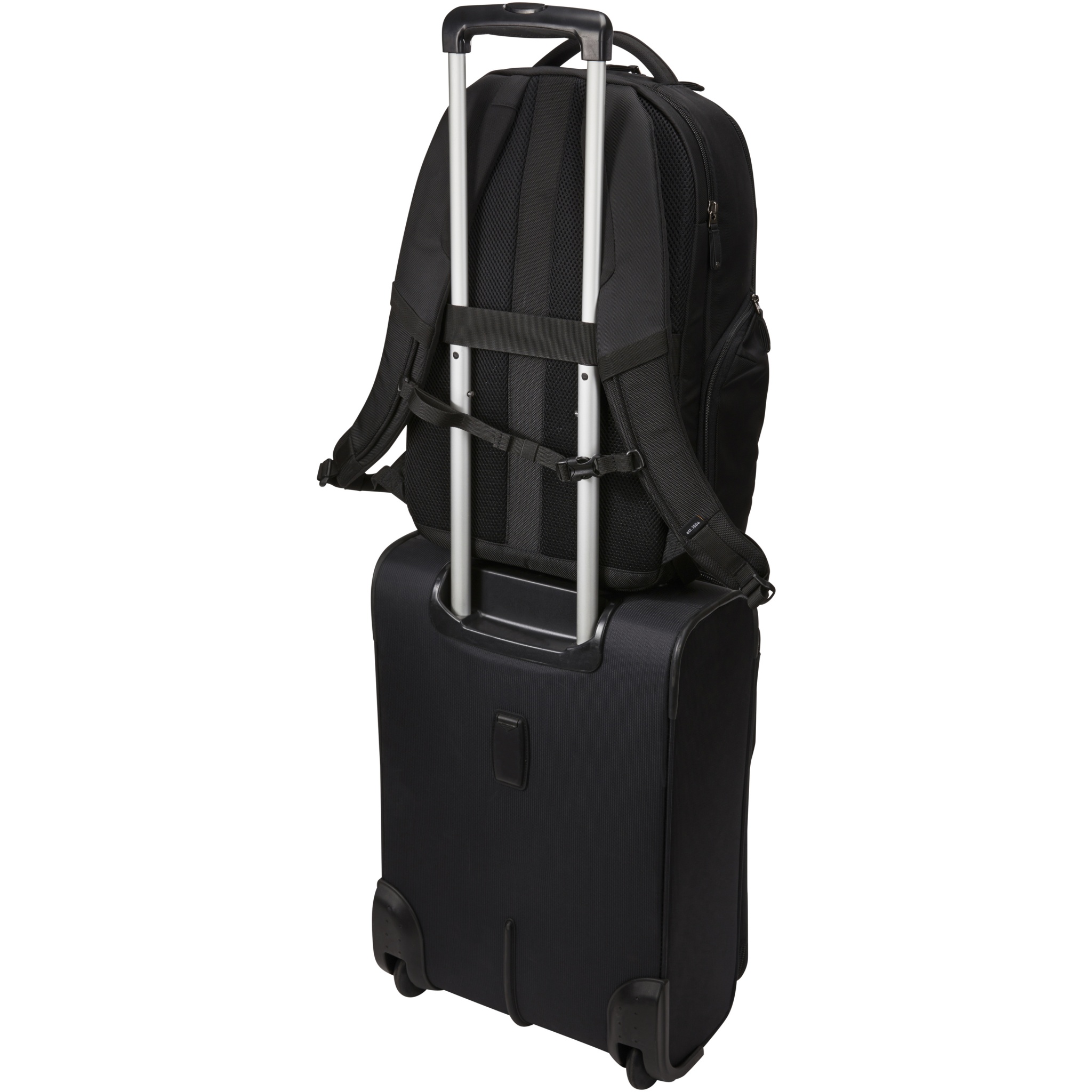 Features a large zippered main compartment with a padded 17.3" laptop and 10.1" tablet sleeve and a zippered mesh pocket for cables and accessories. Comes with a front organization panel to storage small electronics, cables, accessories, business cards and keys. Contains expandable side pockets for water bottle or power brick, padded shoulder straps, quilted air mesh back panel, soft handle and trolley tunnel. Case Logic warranty: 25 years.