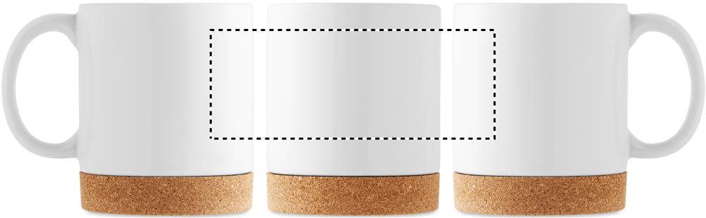 Ceramic mug with cork base detail. Capacity: 280 ml. Cork is a natural product, there may be slight variations in colour and size per item, which can affect the final decoration outcome.