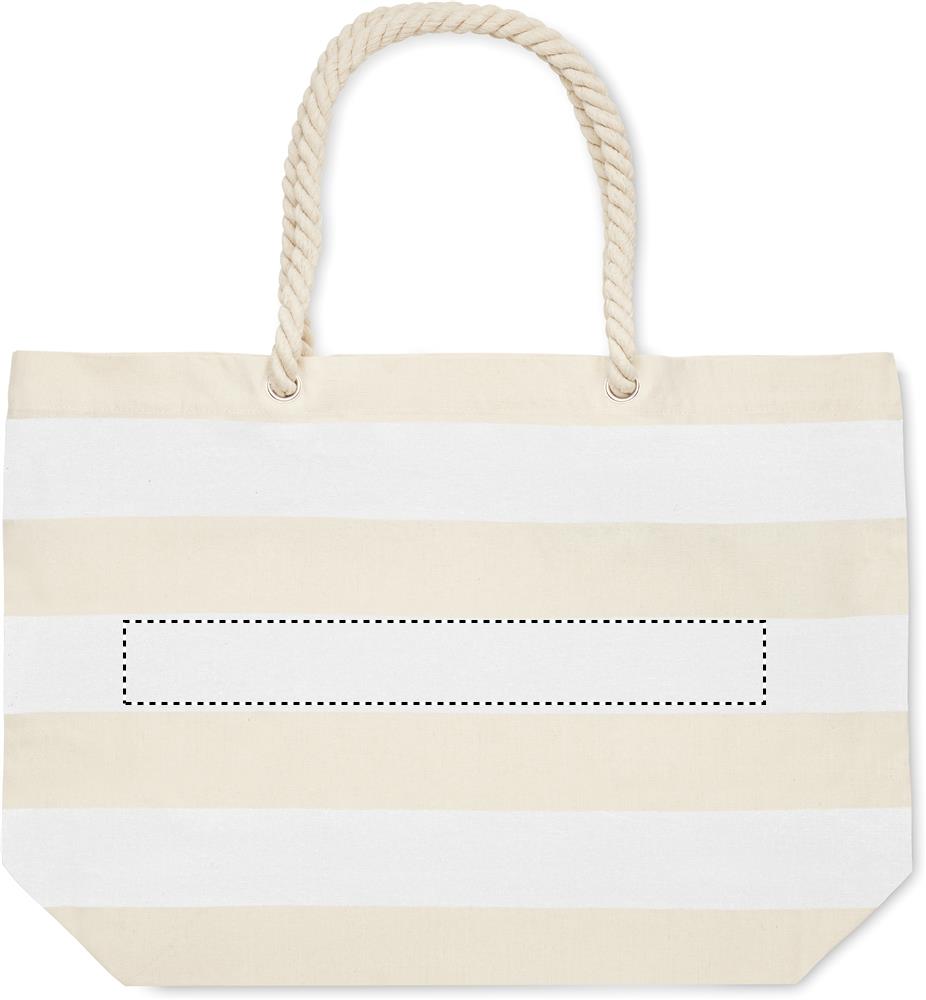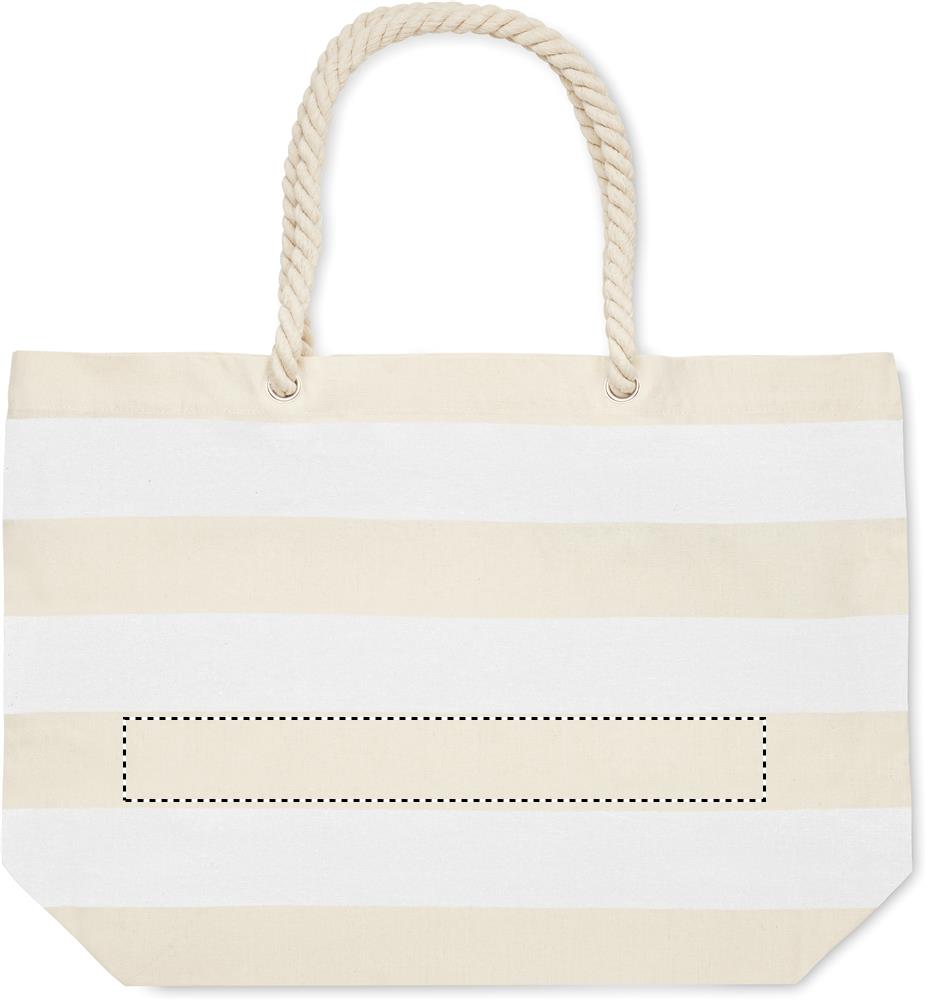 Striped beach or shopping bag in cotton with cord handle. 220 gr/m².