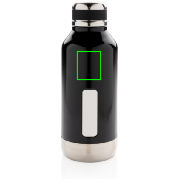 Leak proof vacuum bottle with logo plate, black