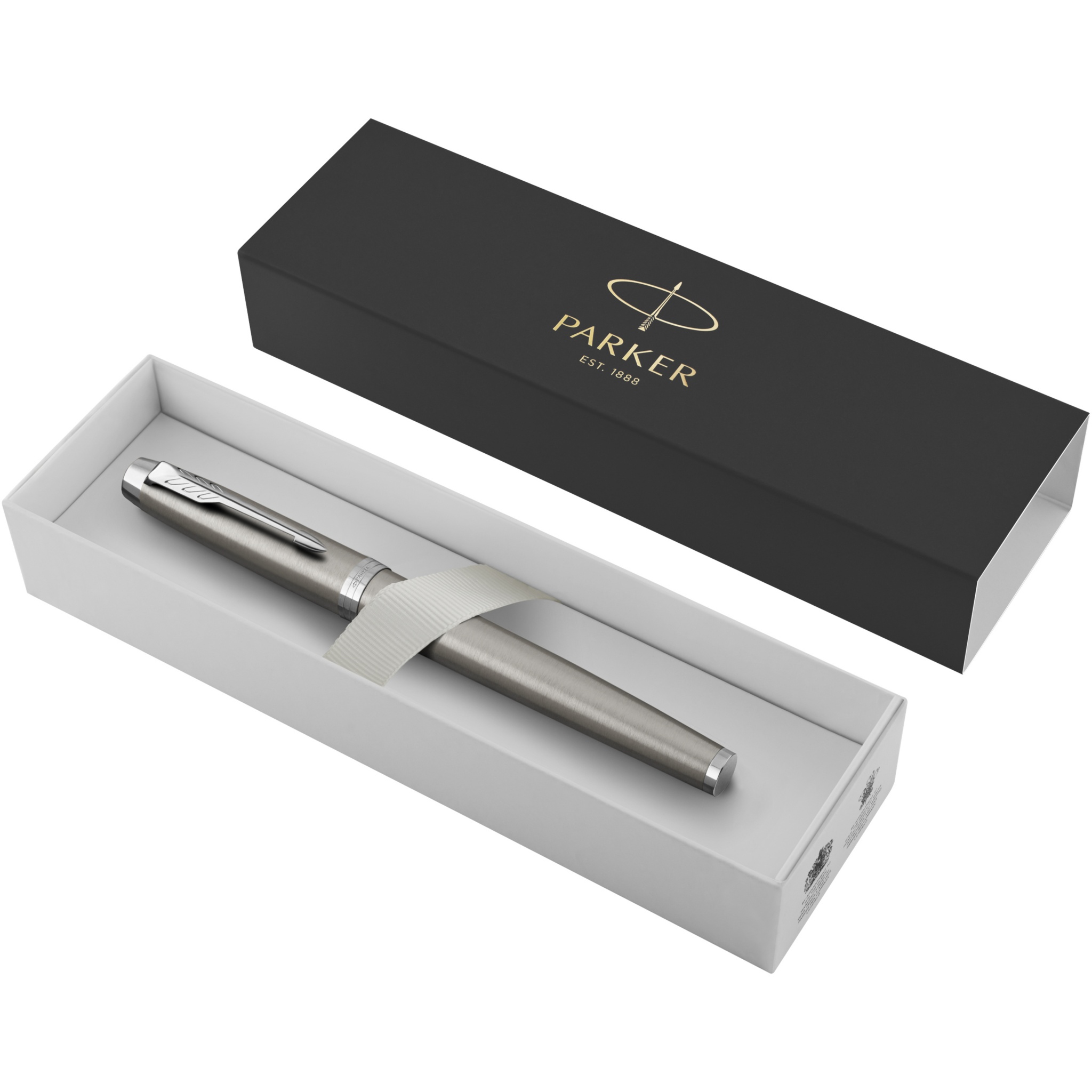 The Parker IM is an ideal partner with unlimited potential. The sleek tapered shape pairs seamlessly with innovative designs to make a striking statement. The finish trims compliment the body, making this Parker pen the perfect writing instrument for students and professionals. The incredibly smooth rollerball tip provides fluid, skip-free writing that ensures you leave striking marks everywhere you write. For use with QUINK rollerball ink refills. Delivered with one cartridge and a Parker gift box. Exclusive design.