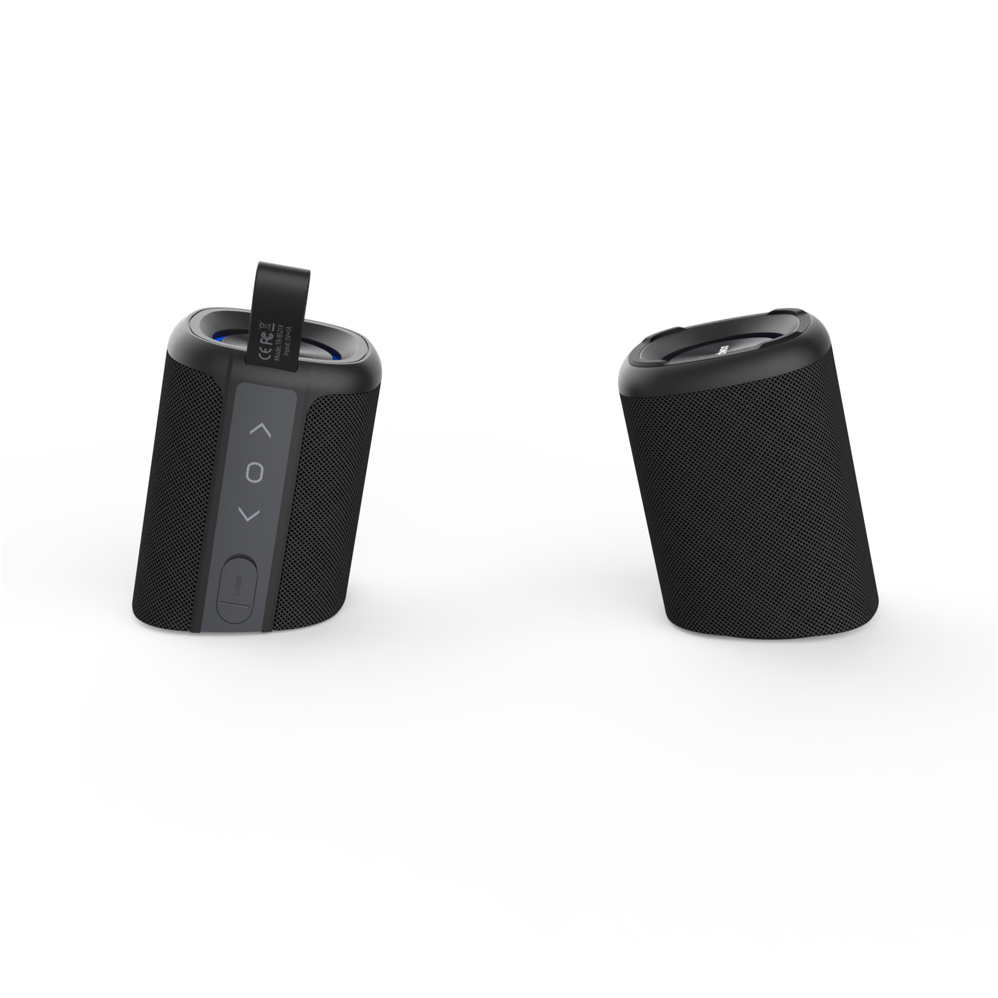 Bluetooth 4.2 IPX7 splash resistant 20 W speaker that can be taken apart into two independent speakers. 2 x 1500 mAh batteries that recharges fully in 2-3 hours, with a playback time of 5-7 hours. Dimensions 20.6 x 7.8 x 7.8 cm. Weight 860 g. Maximum connection distance 10 meters.