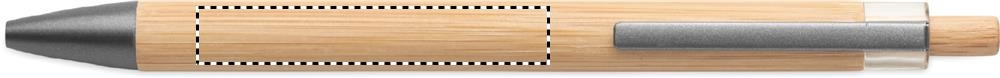 Push button pen with bamboo barrel and metal clip. Blue ink.