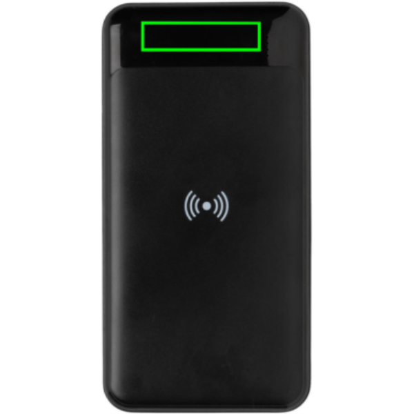 8.000 mAh powerbank with 5W wireless charger where the case is made out of RCS certified recycled ABS plastic. RCS (Recycled Claim Standard) is a standard to verify the recycled content of a product throughout the whole supply chain. Total recycled content: 22% based on total item weight. When fully charged the powerbank provides you with enough energy to re-charge your mobile phone up to four times. The powerbank contains a long lasting grade A 8.000 mAh lithium polymer battery. The power indicators will indicate the remaining energy level so you always know when to re-charge. Type-C input 5V/2A; Micro USB Input 5V/2A; Wireless Output 5W; 2x USB output 5V/2A; Item and accessories PVC free. Including PVC free recycled TPE material charging cable.