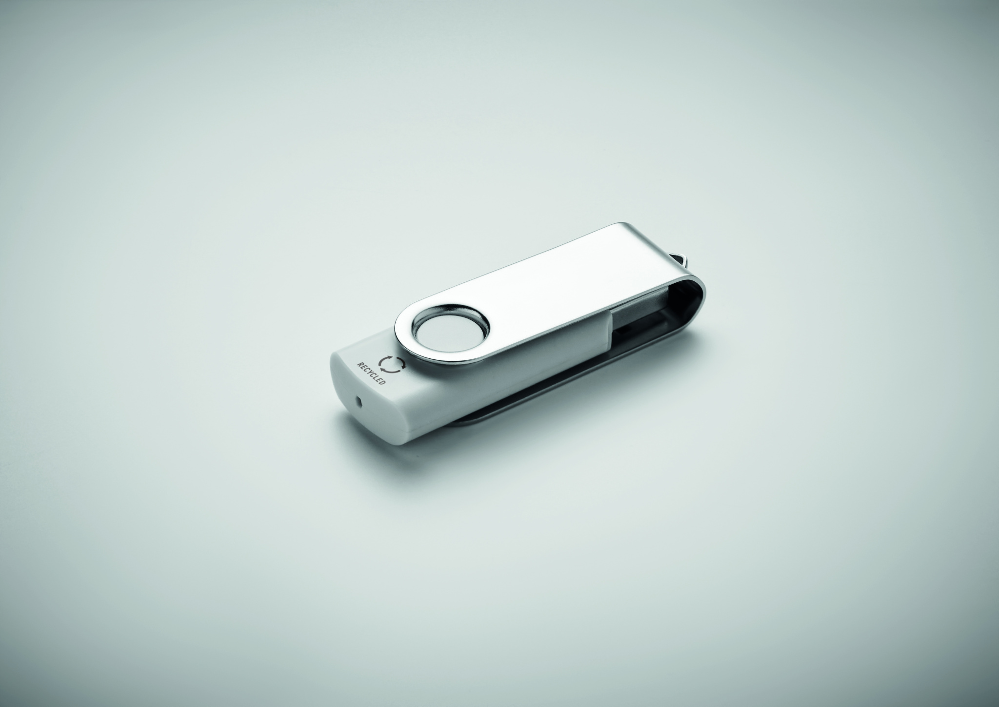 16GB USB 2.0 Flash Drive with protective recycled ABS casing. Rotate the metal cover and connect to USB port to start using it.