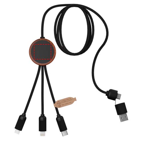 Products Sustainable promotional products SCX.design C37 5-in-1 rPET light-up logo charging cable with round wooden casing