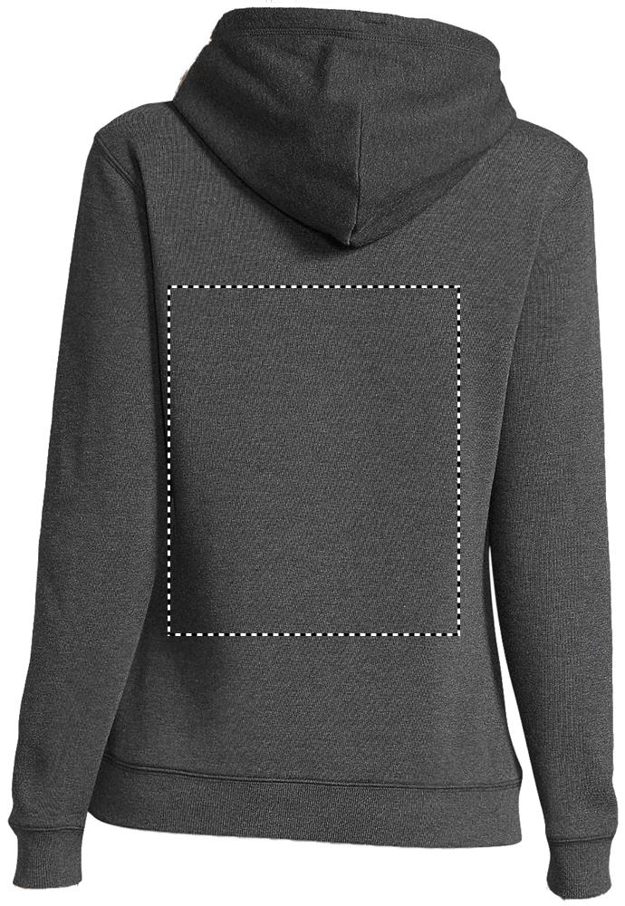 SOL'S SPENCER WOMEN, WOMEN'S HOODED SWEATSHIRT, 80% ringspun cotton - 20% polyester, Brushed lining, Outside: 100% cotton FLEECE 280 LSF (Low Shrinkage Fabric) , Front pouch pocket, Cut and sewn, Lined hood with drawcord, 2x2 ribbed cuffs and hem, Half moon inside collar, Taped neck. About sizes matching, please refer to the size chart in the product documentation section.