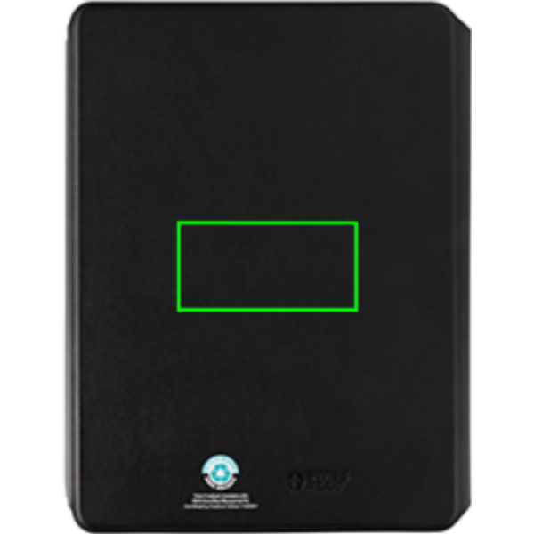 Charge your mobile and watch ( Apple watches only) wirelessly at full speed with this A5 PU material notebook. Luxury and foldable 2-in-1 wireless charger made with RCS certified recycled PU. Total recycled content: 8% based on total item weight. RCS certification ensures a completely certified supply chain of the recycled materials. Snap your phone (iPhone 12 or higher) to the wireless charger and the phone will align perfectly with the magnets inside. The 10W wireless charger is compatible with all QI devices (Iphone 8 and up and Android devices). With integrated 5000 mAh grade-A battery inside. The notebook includes 64 sheets/128 pages of 80 gsm lined FSC® paper.