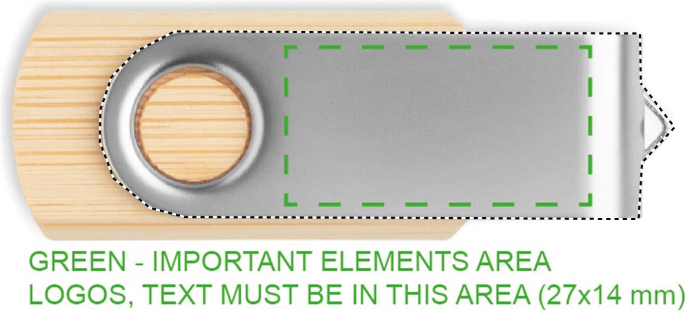 16GB USB 2.0 Flash Drive with bamboo casing and protective metal cover. Rotate the cover and connect to USB port to start using it. Bamboo is a natural product, there may be slight variations in colour and size per item, which can affect the final decoration outcome.