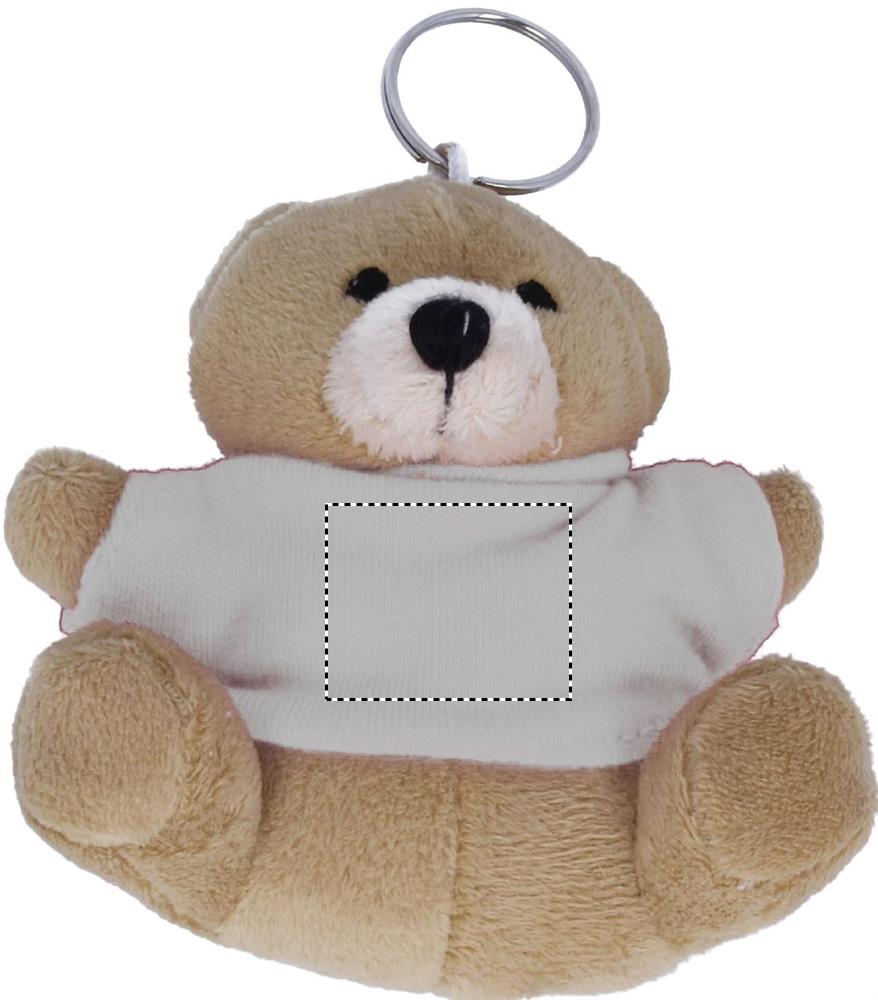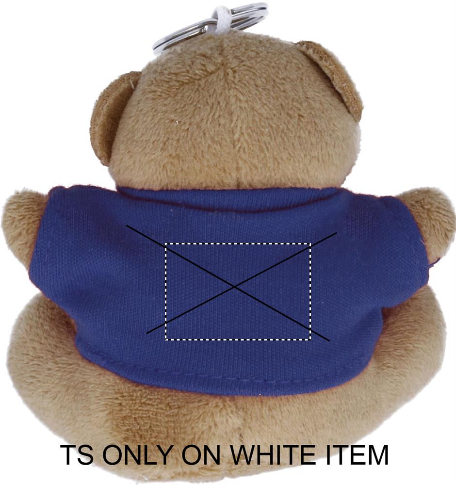 Teddy bear plush key ring. 100% cotton t-shirt for logo imprint.