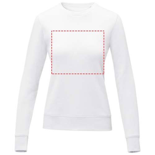 The Zenon women's crewneck sweater – combines comfort with a classic design. Made from a 240 g/m² blend of cotton and polyester. The classic crew neck design is accentuated by flat knit rib details on the collar, cuffs, and bottom hem, providing a snug fit and a touch of sophistication. Additionally, the interior custom branding options allow personalised branding or customisation inside the sweater. The brushed interior adds an extra layer of coziness, making it perfect for colder days. With its thoughtful design and quality materials, the Zenon sweater is a versatile essential that adds a dash of individuality to your look while ensuring maximum comfort. This sweater is designed with a fitted shape for a feminine look.