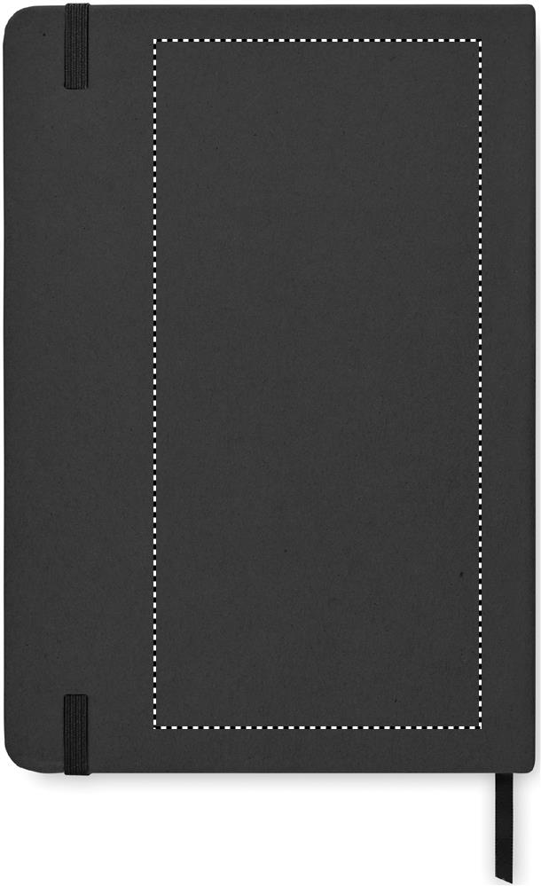 A5 märkmik kõva taaskasutatud pappkaanega. Casebound. 160 kivipaberiga vooderdatud lehte (80 lehte). Elastne sulgemisrihm ja lint-lehemarker.