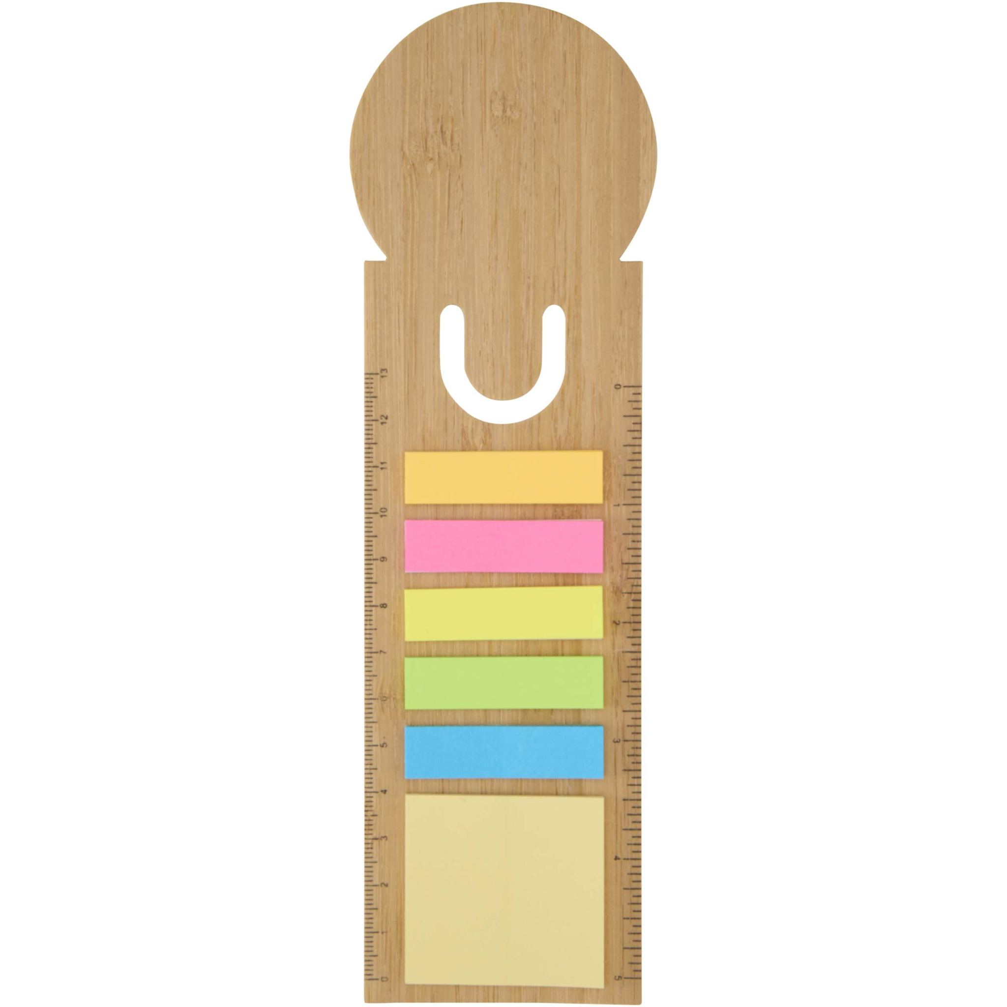Frei puidust joonlaua ja märkmepaberite komplekt sisaldab 125 väikest (4,2 x 0,6 cm) kleepmärkmepaberit viies erinevas värvitoonis ja 25 suurt (4,2 x 4 cm) kollast kleepmärkmepaberit.