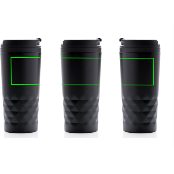 Moodne geomeetriliste detailidega roostevabast terasest termostass. Sisekorpus on valmistatud plastikust. Ainult käsipesu. Sisu 300ml.