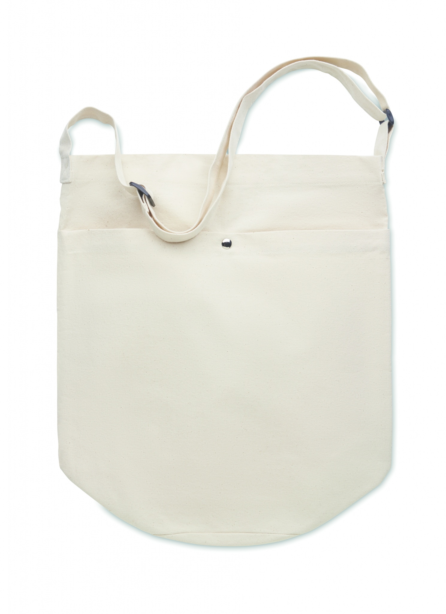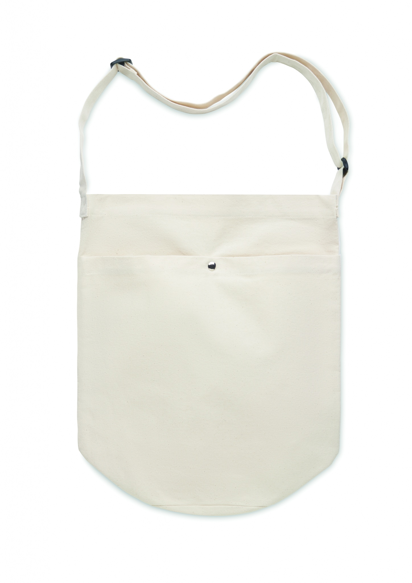 Lõuendist kott pika reguleeritava risti õlarihma ja suure krõpskinnitusega esitaskuga. Kaasas sisetasku. 270 gr/m².