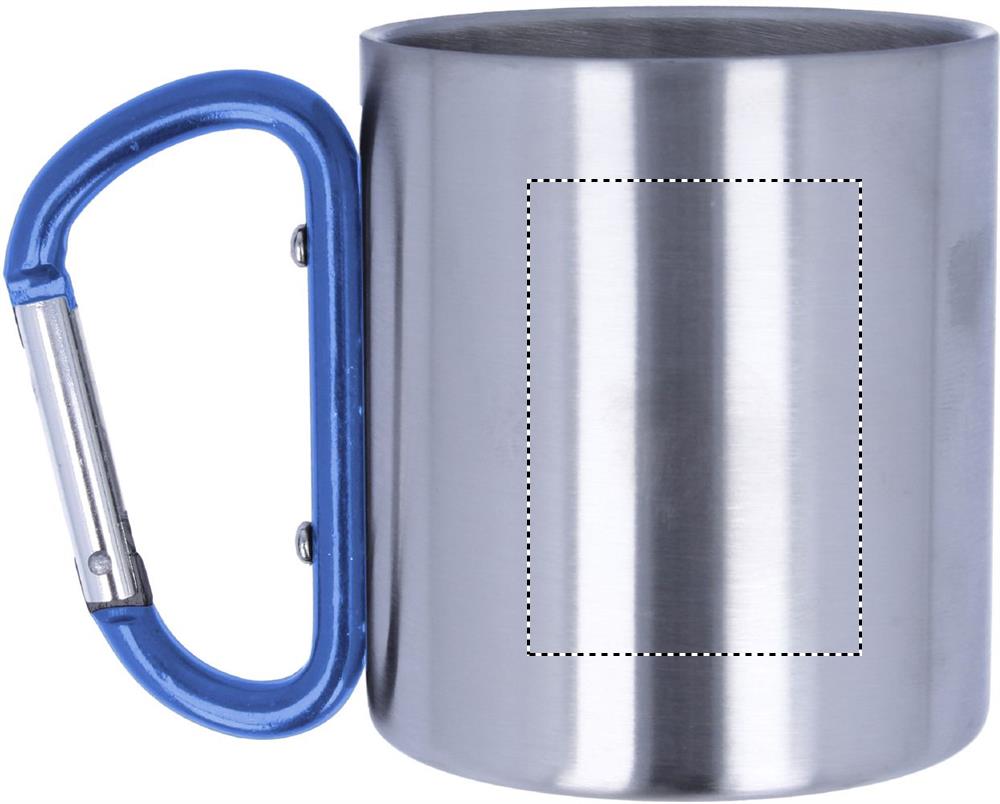 Logotrade reklaamtoote foto: Metallist kruus ja karabiiniga käepide