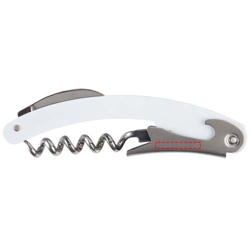 Roostevabast terasest ettekandja nuga värvilise korpusega, millel on fooliumilõikur ja pudeliavaja.