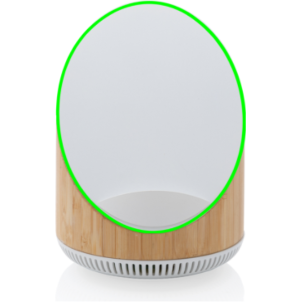 Stiilne bambusest ja ABS-kõlar integreeritud 15 W juhtmevaba kiirlaadijaga. Juhtmeta laadijal on kaks integreeritud mähist, mis toetavad nii vertikaalset kui ka horisontaalset laadimist. Sisaldab selge heliga 5 W juhtmevaba kõlarit. 2200 mah aku võimaldab mänguaega kuni 10 tundi. Juhtmeta laadimise funktsiooni on soovitatav kasutada, kui seade on ühendatud toiteallikaga. Töökaugus kuni 10 meetrit. Kaasas 120 cm TPE PVC vaba mikro-USB laadimiskaabel. Nõutav sisend 9V/2A.