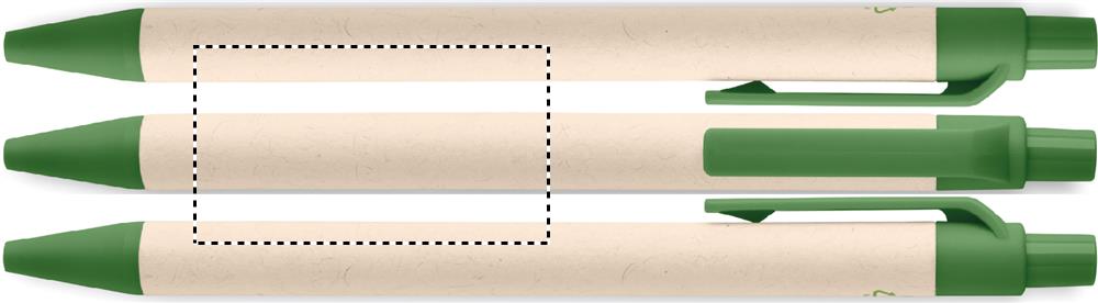 Nupuga pastapliiats taaskasutatud piimapaki tünniga (70% taaskasutatud piimapakk ja 30% taaskasutatud paber) ja PLA osadega (100% biolagunevast maisist). Sinine tint.