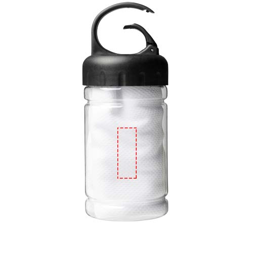 Tugevast ja vastupidavast polüestrist kiiresti imenduv, kiiresti kuivav ja pestav jahutusrätik, mis hoiab jahedana treeningu või välistegevuse ajal. Kaasas PET-konteiner, mille kandesangaga on lihtne kaasas kanda sisseehitatud karabiin. Saadaval 5 värsket värvi. Mahutil suur kaunistuse logoala, kaunistus võimalik ka jahutusrätikul endal. Mõõdud: 30 x 80 cm.