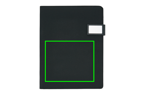 A4 tehniline portfell luksusliku magnetilise metallsulguriga. Sees: tahvelarvuti/telefoni alus, telefonihoidik läbipaistva aknaga, mis võimaldab teil oma seadet vaadata ja sellele juurde pääseda. Sobib enamlevinud telefonidele. Varrukaga dokumentide jaoks, 2 kaardihoidjat ja pliiatsi aasa. Kaasa arvatud taaskasutatud A4 märkmik.
