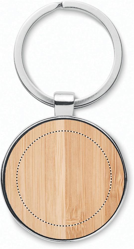 Ümmarguse kujuga tsingisulamist võtmehoidja bambusest esiosaga. Bambus on looduslik toode, ühe eseme värvis ja suuruses võib esineda väikesi erinevusi, mis võivad mõjutada lõppviimistlust.