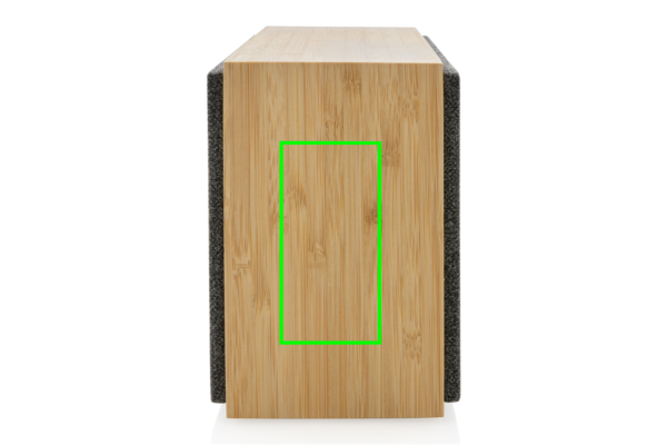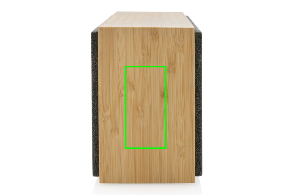 Luksuslik ja võimas 20 W kõlar selge heli ja tugeva bassiga. Väliskest on valmistatud FSC 100% sertifitseeritud bambusest. Plastosad on valmistatud RCS (Recycled Claim Standard) sertifitseeritud ringlussevõetud ABS-ist. Kogu taaskasutatud sisaldus: 17% toote kogukaalust. RCS-sertifikaat tagab taaskasutatud materjalide täielikult sertifitseeritud tarneahela. Kõlariga on kaasas BT 5.1, mis tagab lihtsa ja sujuva töö kuni 10 meetri kaugusel ning väikese energiatarbimise. 1200 mah aku võimaldab mängida kuni 6 tundi ja seda saab täielikult laadida 3 tunniga. Vastuvõtufunktsiooni ja mikrofoniga (video)kõnedele vastamiseks. Pakitud FSC mix kraft karpi. Kaasa arvatud RCS-sertifikaadiga taaskasutatud TPE laadimiskaabel.