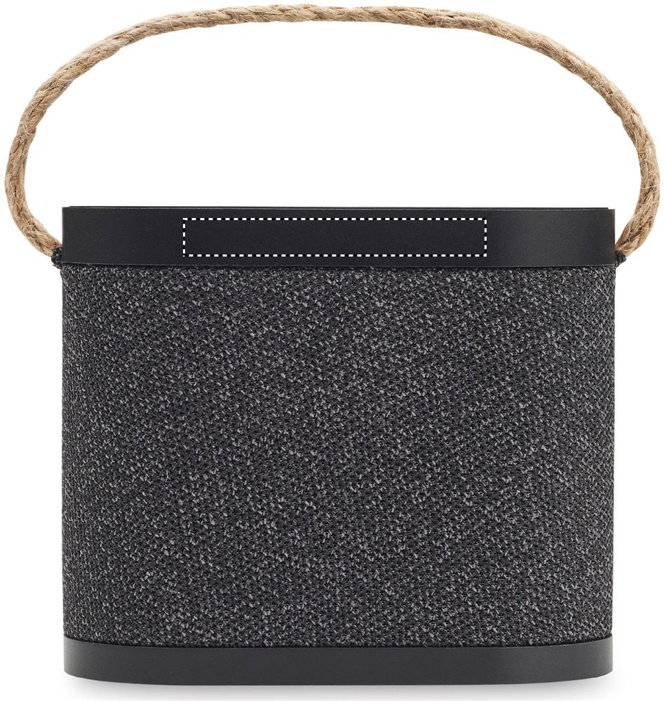 5.3 langaton ABS-kaiutin RPET-polyesterikankaalla ja bambusta valmistettu 15 W:n langaton laturi, juuttikahvalla. 1 ladattava Li-Ion 1200 mAh akku. Lähtötiedot: 5W, 4 ohmia ja 5V. Peliaika n. 4h.