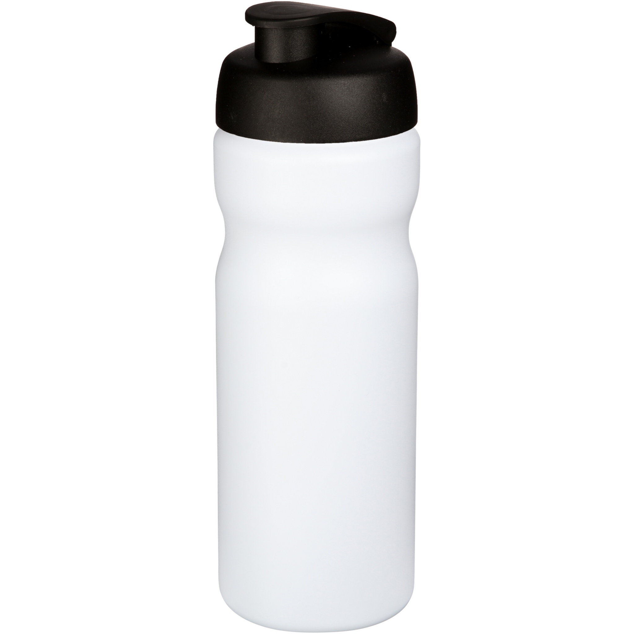 Baseline® Plus 650 ml -urheilujuomapullo läppäkannella, Valkoinen / tasainen musta