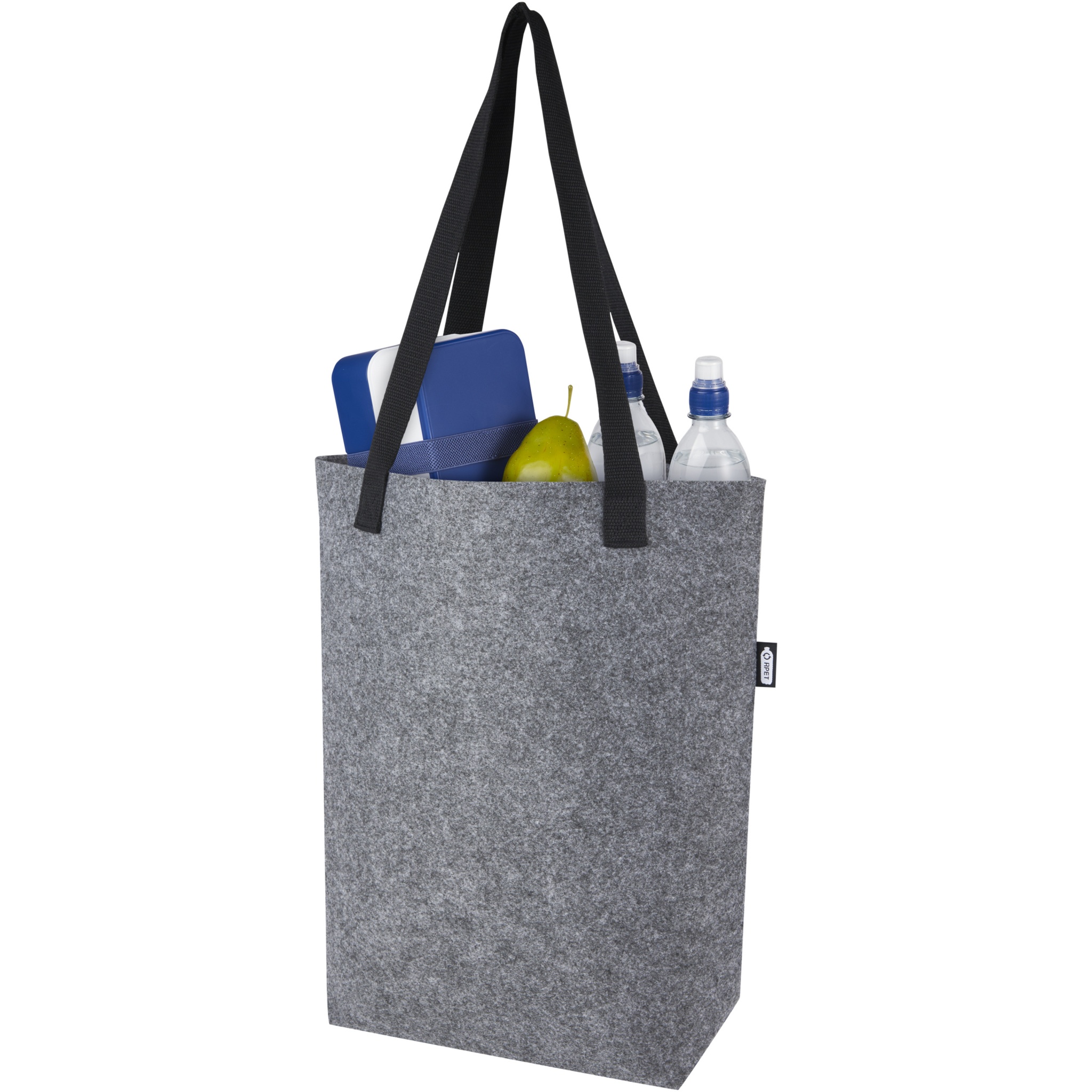 Käytännöllinen kassi pehmeästä, kestävästä ja korkealaatuisesta GRS-sertifioidusta kierrätyshuovasta. Kassia on mukava kantaa pitkien kudottujen puuvillakahvojen ansiosta (30 x 2,5 cm) ja sen erittäin leveä pohja takaa mahdollisimman suuren säilytystilan.