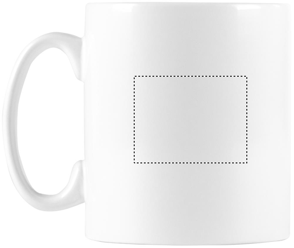 Keraaminen muki 300 ml, erikoispinnoite sublimaatiota varten. Yksittäispakattuna valkoiseen pahvilaatikkoon.