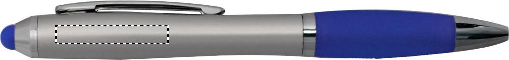 Kiertomekanismilla varustettu kuulakärkikynä sinisellä musteella, grippi ja kosketusnäyttöpää.