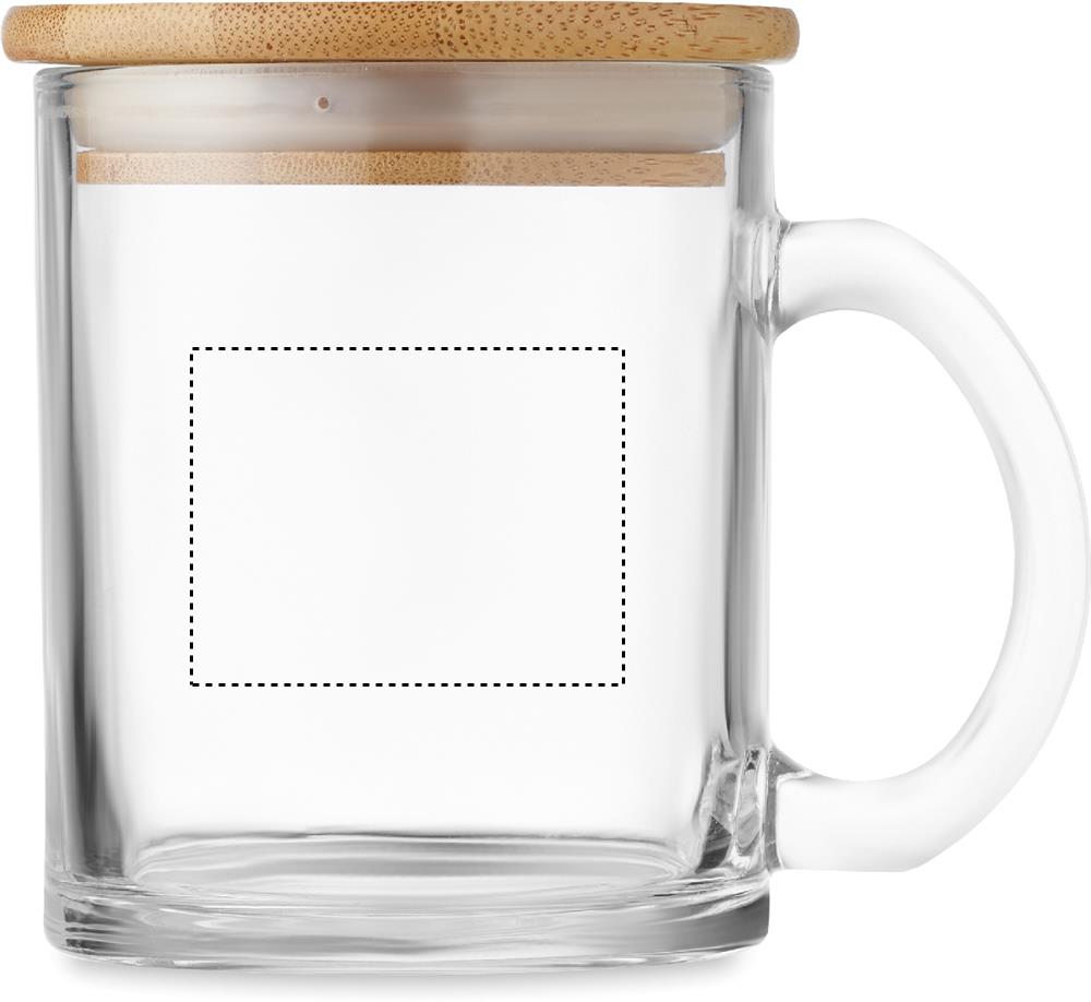 Kierrätyslasimuki bambukannella. Tilavuus: 300 ml.