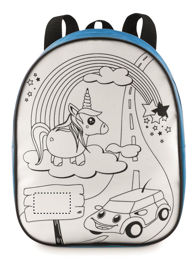 600D- polyesterinen lastenreppu, sisältää 5 värikynää.