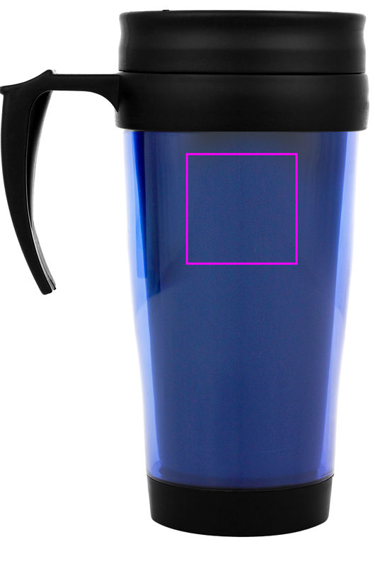 Kuuma vai kylmä? Tämä 0,4 litran kaksiseinämäinen muovikuppi liukuvalla reunuksella sopii kaikille matkoille ja pitää juomasi lämpimänä tai kylmänä. Sopii kaikkiin auton mukintelineisiin. Todella hieno metallinen hopea, sininen ja punainen kupit. Saatavana myös valkoisena, mikä sopii erinomaisesti moniväritulostukseen. Laitamme logosi kahvan vasemmalle puolelle. Jokainen kuppi on pakattu yhteen pahvilaatikkoon.
