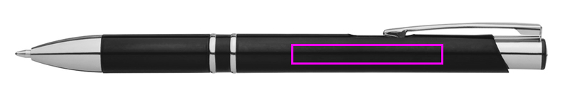 Muovinen kuulakärkikynä, jossa on sinikirjoitus muovitäyttöä ja hopeaa. Logosi painetaan klipin alle.