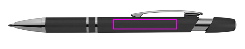 Metallisen näköinen muovinen kuulakynä suurella täyttö- ja työntötoiminnolla. Painamme logosi klipin alle.