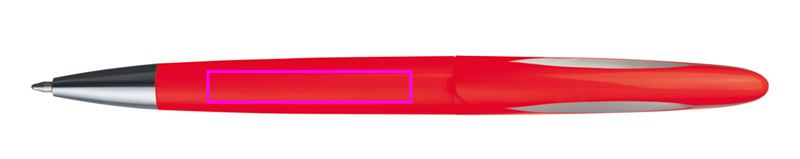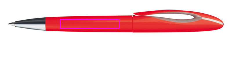 Muovinen kuulakärkikynä, jossa pyörivä mekanismi ja sinikirjoitus muovitäyttö. Painamme logosi varrelle.