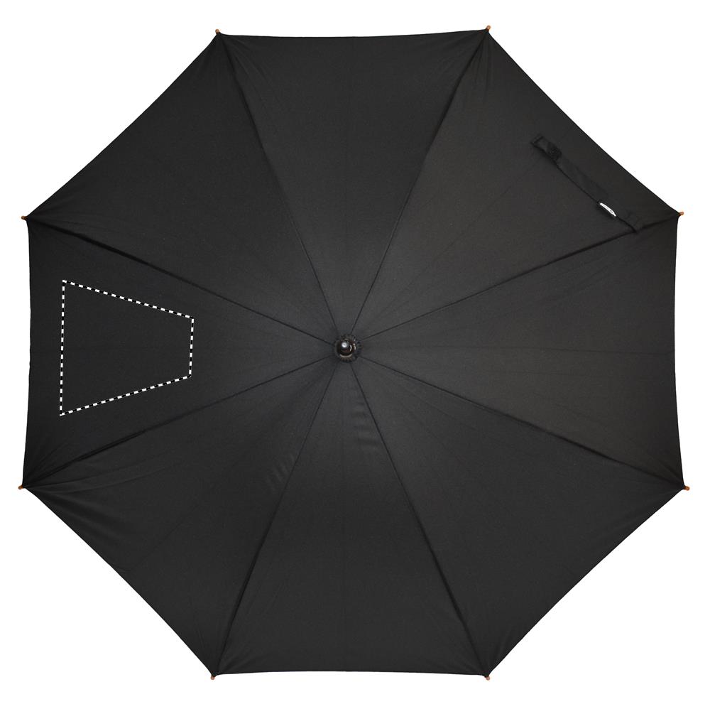 190T RPET pongee 23 tuuman automaattinen sateenvarjo, puisella kahvalla-, kärjillä- ja päällä. Mustalla päällystetty metallinen ruode, manuaalinen suljin.