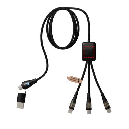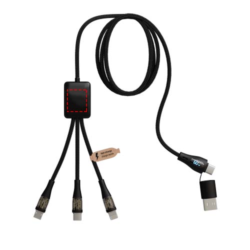 Logo trade liikelahjat tuotekuva: SCX.design C51 näytöllä varustettu 5-in-1-pikalatauskaapeli rPET-muovista, 60 W